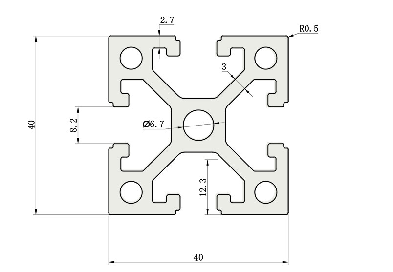 適用于應(yīng)力及強(qiáng)度較大的框架組合結(jié)構(gòu),它的外型采用圓角過(guò)渡,表面經(jīng)過(guò)陽(yáng)極氧化處理,高雅美觀并抗腐蝕,它通常采用M8X20高強(qiáng)度專(zhuān)用螺栓加彈性扣件的內(nèi)部連接方式,堅(jiān)固而又可靠,是工業(yè)框架應(yīng)用較為廣泛的型材之一。