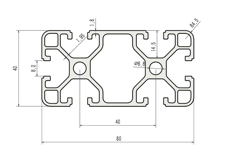 適用于應(yīng)力及強(qiáng)度較大的框架組合結(jié)構(gòu),它的外型采用圓角過(guò)渡,表面經(jīng)過(guò)陽(yáng)極氧化處理,高雅美觀并抗腐蝕,它通常采用M8X20高強(qiáng)度專(zhuān)用螺栓加彈性扣件的內(nèi)部連接方式,堅(jiān)固而又可靠,是工業(yè)框架應(yīng)用較為廣泛的型材之一。